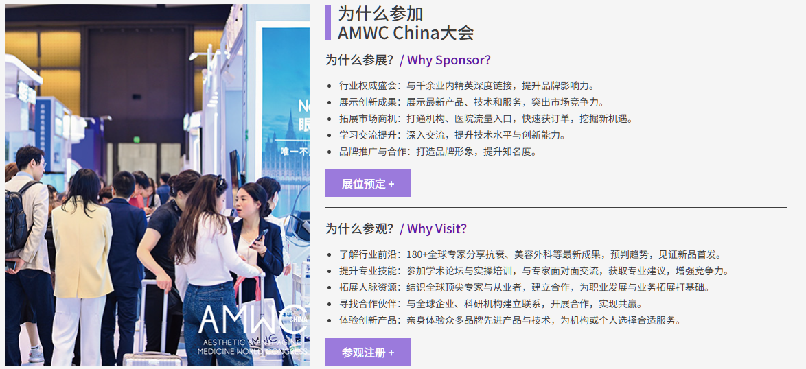 在这样的行业背景下,AMWC China 2026世界美容抗衰老大会强势来袭。这不仅是一场医美行业的盛会,更是行业发展的风向标。10月16日至18日,成都五洲情会展中心,一场汇聚全球医美前沿动态、dingjian技术和创新产品的盛宴即将拉开帷幕!